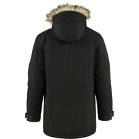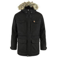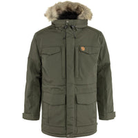 Long, generous parka that reaches down over the rear and thighs. A perfect choice for changeable weather conditions; it protects against the wind and rain and the synthetic padding keeps you warm in really cold temperatures. Fleece-lined storm hood with metal wire and detachable faux fur edging. Eight pockets with plenty of room for essential items. Drawcord at the waist and two-way zipper with protective flap. This is an updated version of Fjällräven’s classic parka, now with sustainable fabrics and improved features and fit.