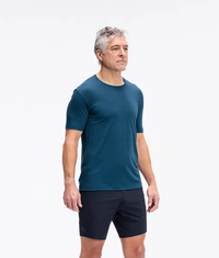 A summer staple that redefines the classic t-shirt for the trail. Crafted from merino-rich fabric, it blends breathability, moisture-wicking properties, and a comfortable fit that keeps you cool and fresh all day. Whether you're hitting local trails or exploring new landscapes, this shirt is your go-to for summer adventure.