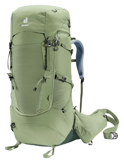 The superior carry comfort and load distribution of this pack is down to the Deuter Aircontact back system with Air Spacer mesh and a wide ventilation channel, plus comfortable shoulder straps, mobile hip fins and an ergonomic lumbar pad. A full-length, J-shaped zipper on the front makes it quick and easy to locate items lower down in the main compartment. While detachable 3-liter hip fin pockets provide extra storage and keep items within reach. A zip-out 1.5-liter bottle holster also lets you hydrate on the move.