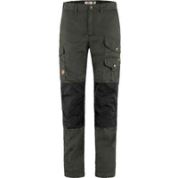 Durable trekking trousers for adventures in the mountains and forest. Made from durable wind and water-resistant G-1000 fabric with double layers over the rear and knees. Regular waist and regular fit with articulated knees. Six practical pockets including a map pocket and an axe pocket. Elastic strap adjustments with press buttons at leg endings.