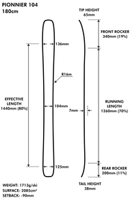 This year, the Pionnier 104 gets a full refresh! After five seasons of snowy fun, our engineering team found the inspiration to take this beloved ski to the next level—introducing the Pionnier 104 2.0.